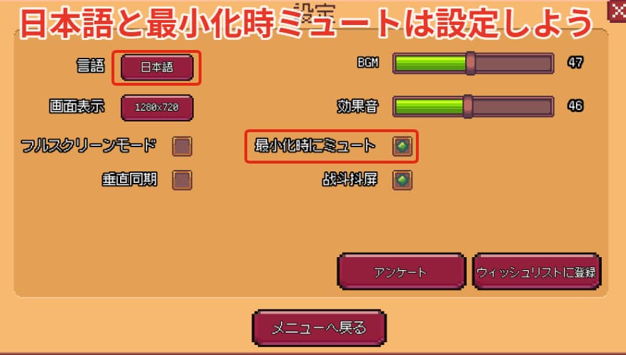 また、放置ゲーなので裏で起動する際に最小化時にミュートは設定しておくと〇