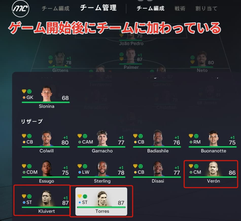 選択したスーパープレイヤーはゲーム開始時からチームに加わっているので、起用していきましょう。