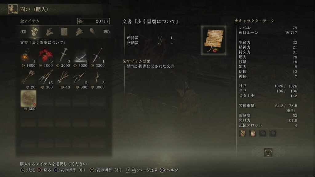 霊廟には鐘が足元についている霊廟とついていない霊廟が存在していて、鐘がない霊廟だとデミゴット達の追憶は複製が出来ず、その他の追憶のみとなります