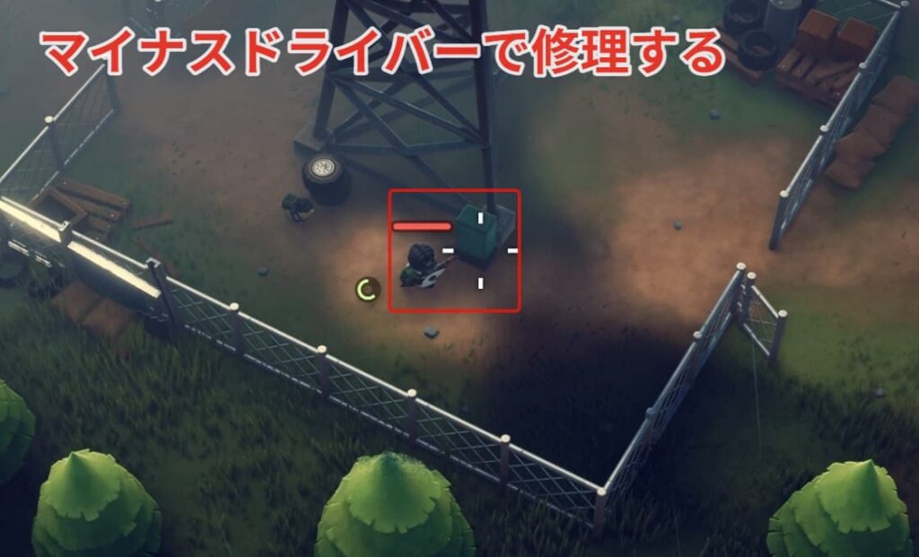 信号塔付近の配電盤をマイナスドライバーで修理しましょう。