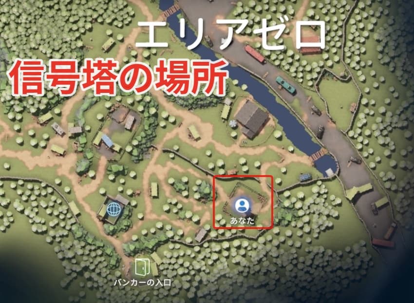 信号塔はバンカーのすぐ右側にあります。