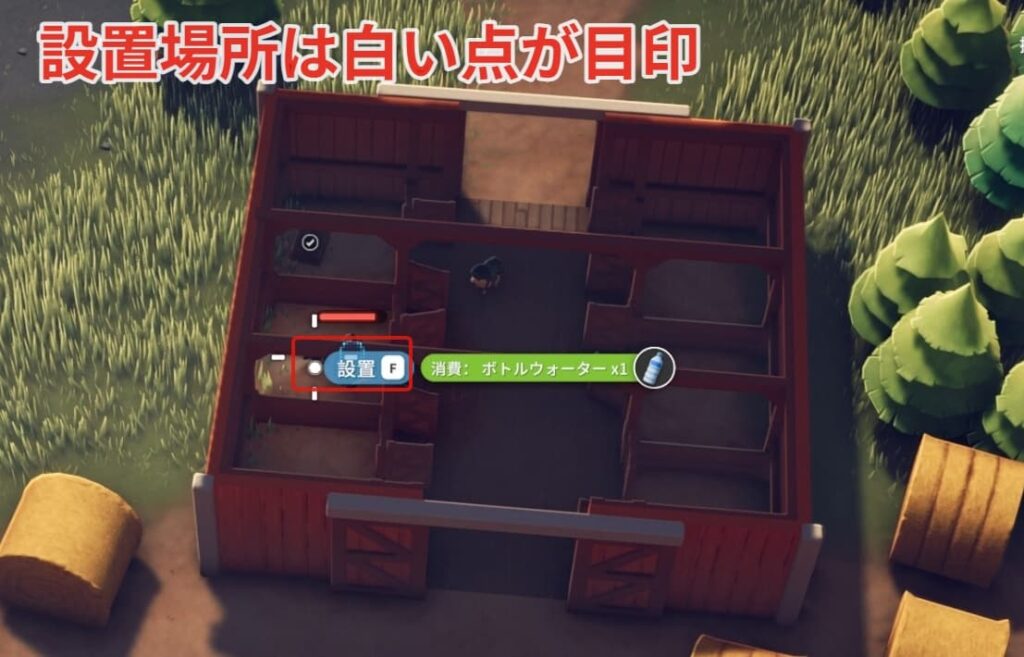 小屋の中に入ると白い点が出現するのでそこに設置しましょう。