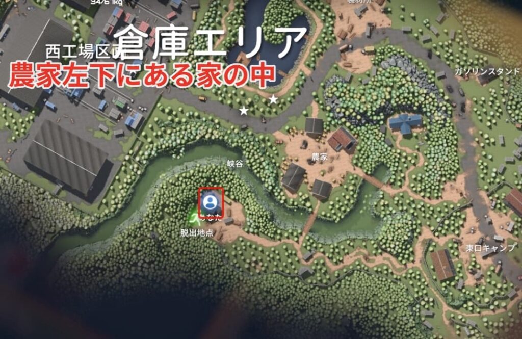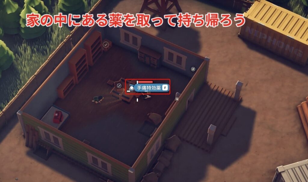手痛特効薬は農家から左下にある緑の家の中にあります。