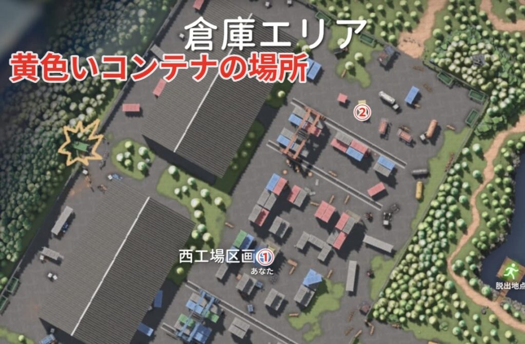 西工場区画にある黄色いコンテナにマップマーカーを用いてマークをしていきます。
