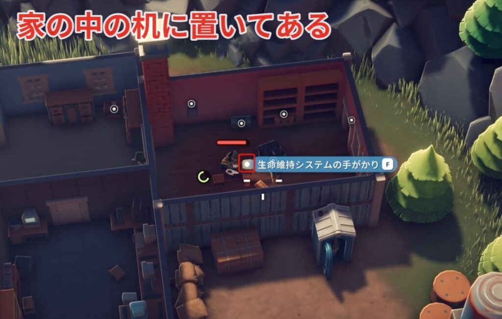 生命維持システムの手がかりは農家近くにある青い家(セーフハウス)に置いてあります。