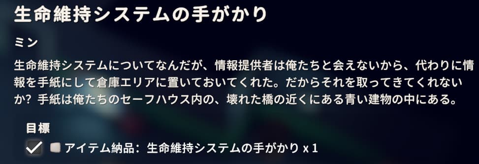 エスケープフロムダッコフの【クエスト:生命維持システムの手がかり】について紹介していきます。