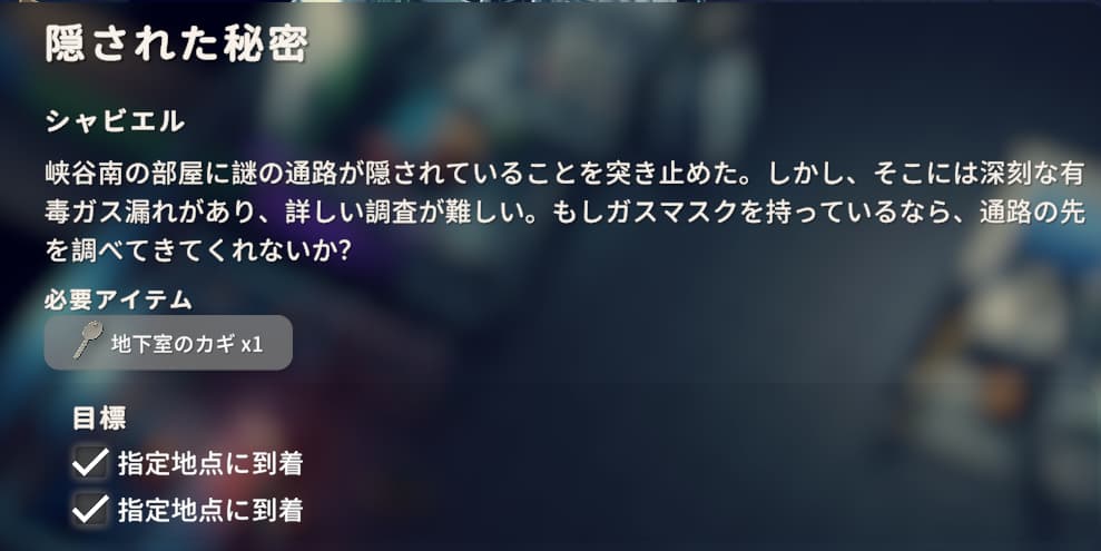 隠された秘密では毒ガス対策でガスマスクを装備する必要があります。