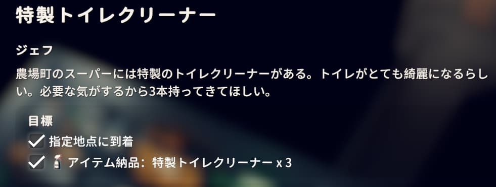 エスケープフロムダッコフの【クエスト:特製トイレクリーナー】について紹介していきます。