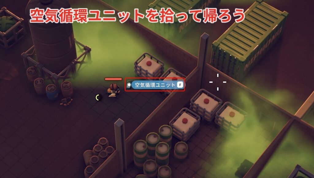 建物の中に空気循環ユニットが落ちているので拾って帰りましょう。