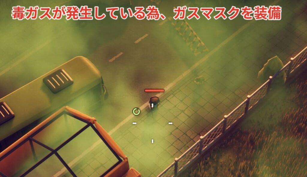 化学工場は毒ガスが発生しているのでガスマスクを装備して向かいましょう。