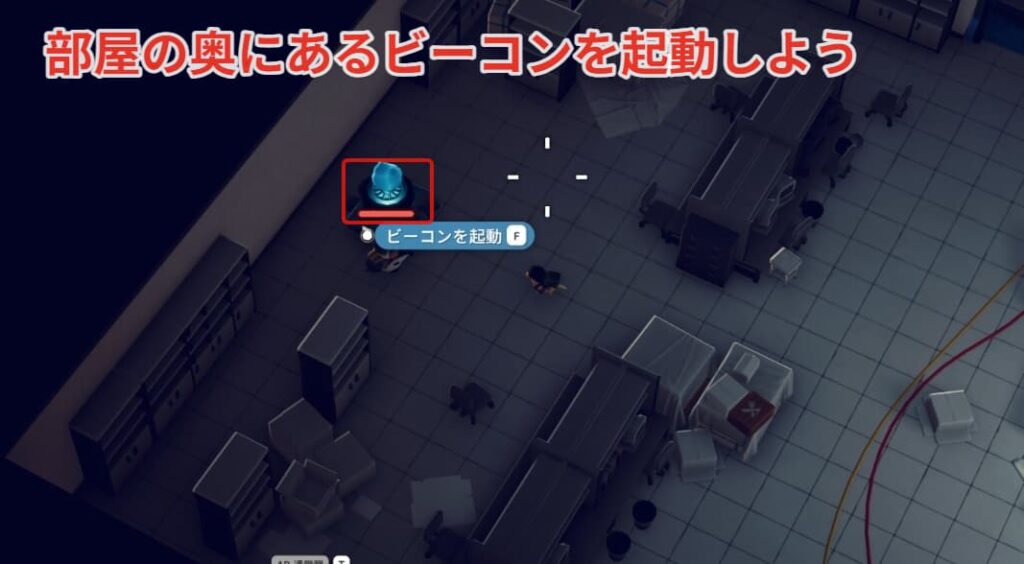 ビーコンの位置は入口からマップ上で右に向かっていけば辿り着きます。