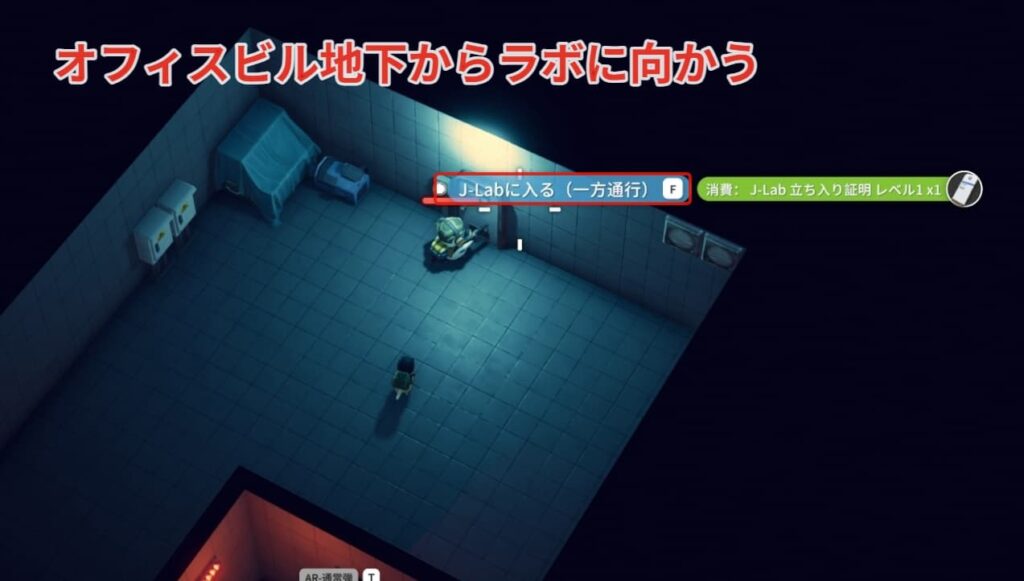 J-Labのビーコンを解放する為に、オフィスビル地下からラボに向かいましょう。