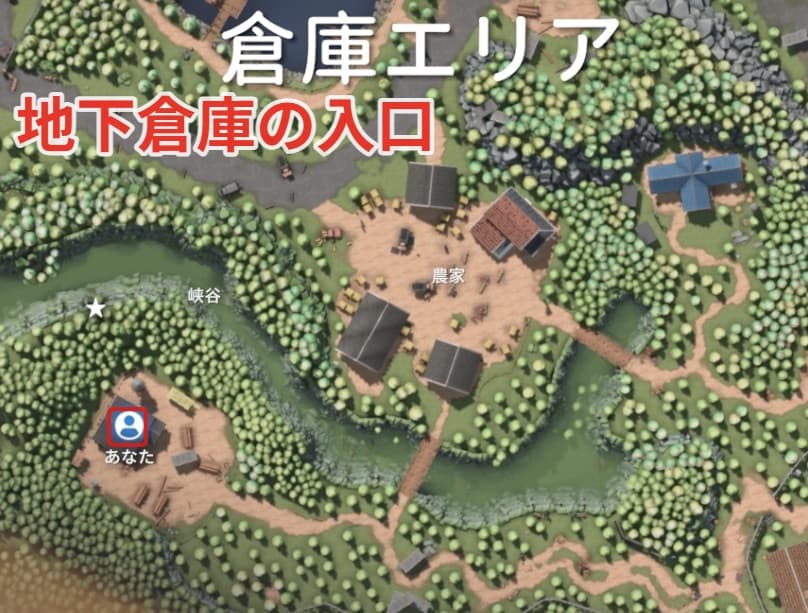 倉庫エリアの農家から左下にある緑の家から地下に向かいましょう。