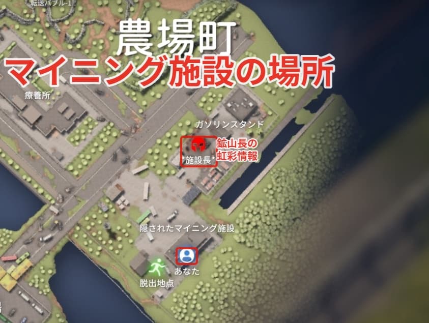 中に入る為の【鉱山長の虹彩情報】は横のガソリンスタンドに出現する施設長から手に入ります。