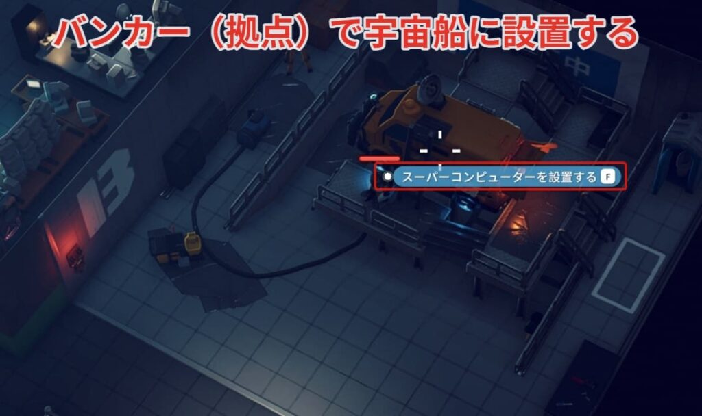 バンカー(拠点)にある宇宙船に向かいスーパーコンピューターを設置しましょう。