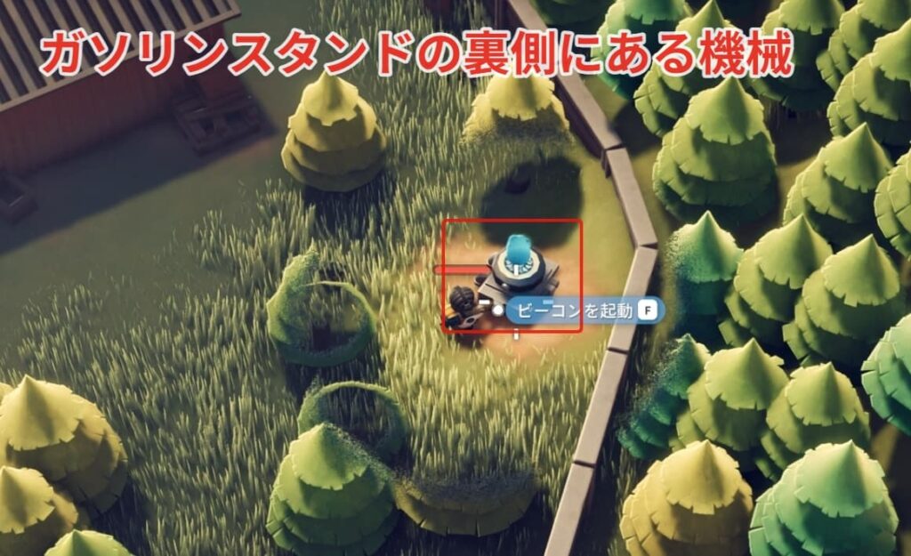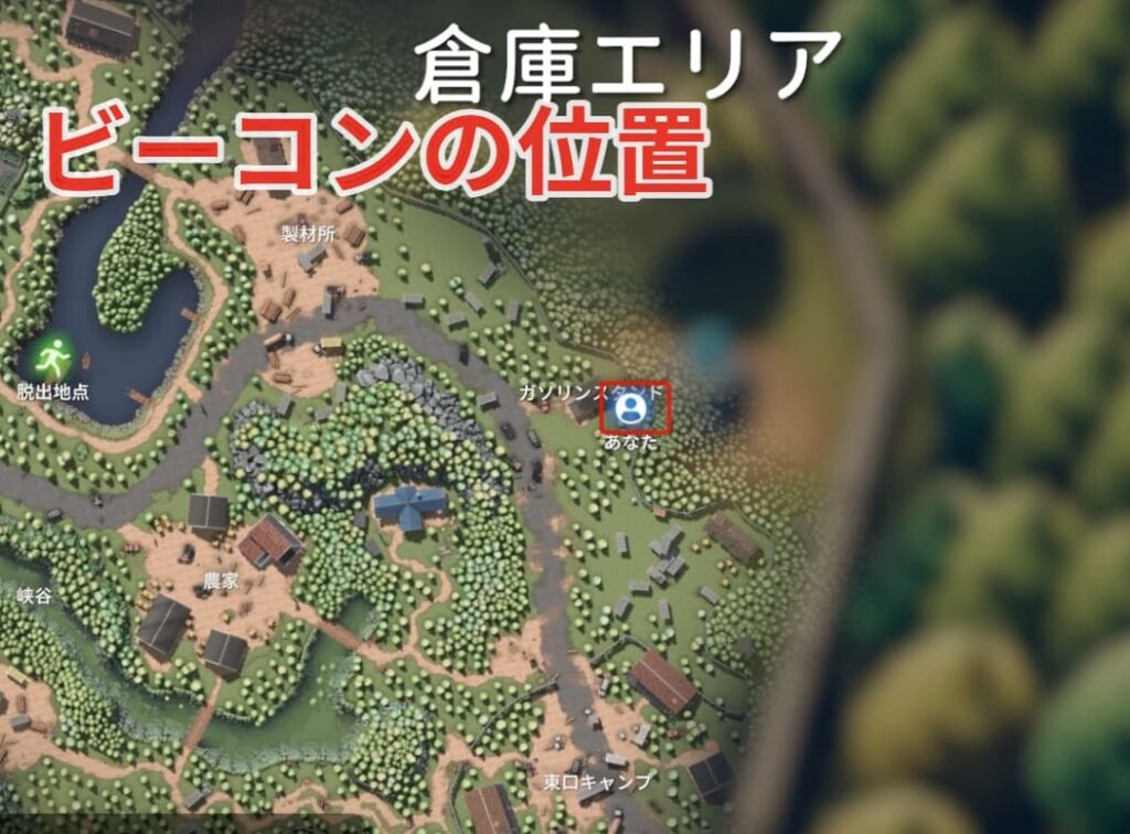 倉庫エリアのビーコンはガソリンスタンドの近くにあります。