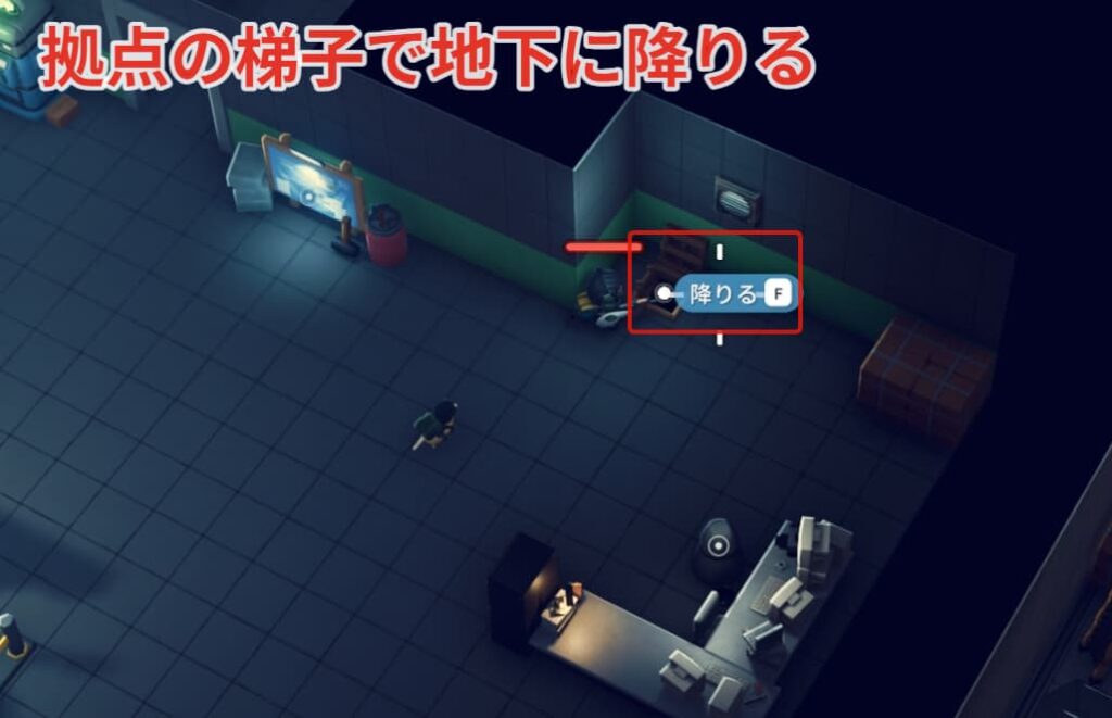 トーテムを入手するには拠点の右側にある梯子から地下におりましょう。