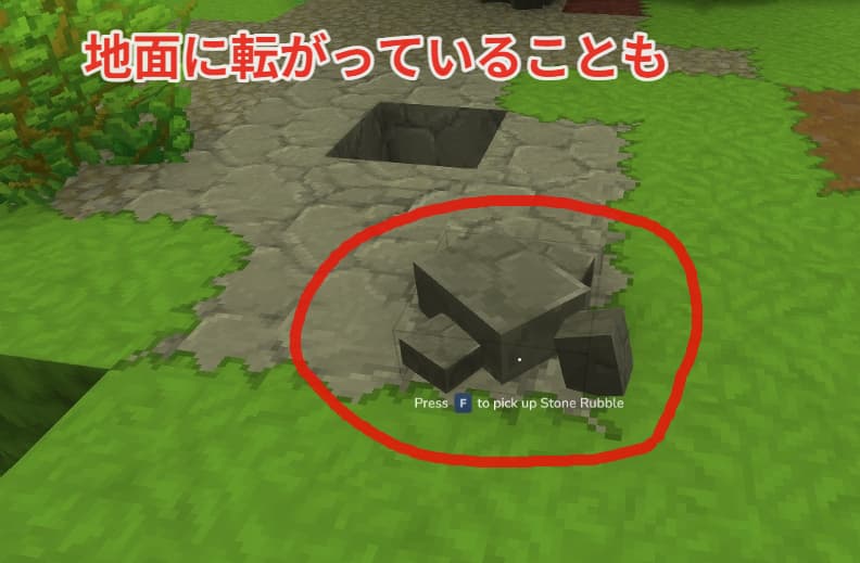 ガレキは画像の様な石よりも模様が細かいブロックを壊しましょう(サクサクみたいな音)
