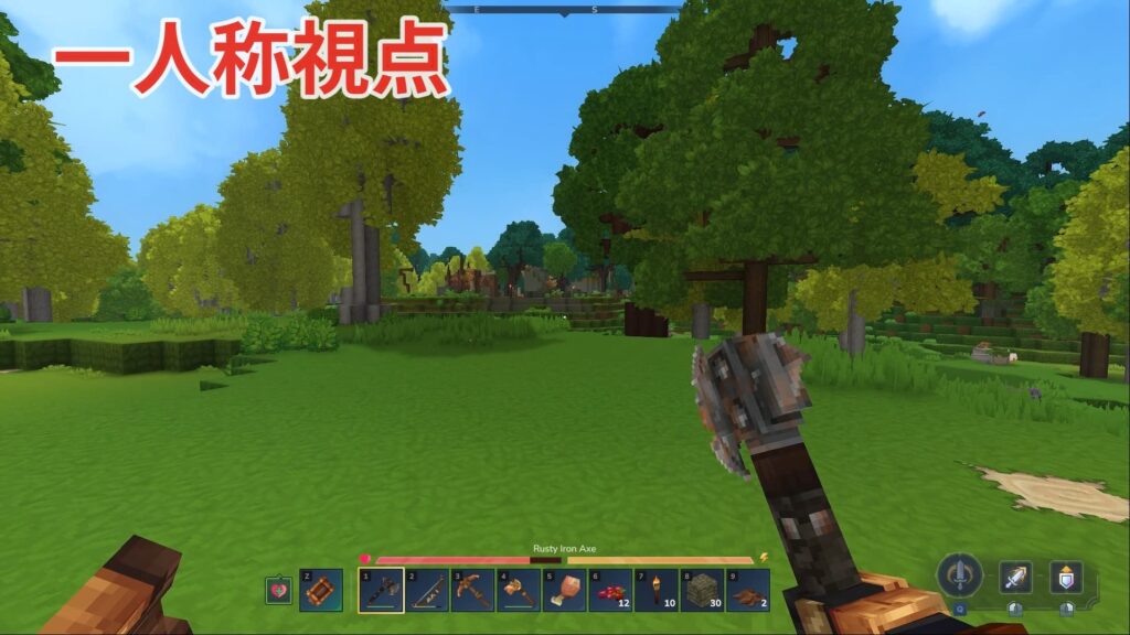 Hytale では、ゲーム開始直後から1人称視点でゲームが進んでいきます。