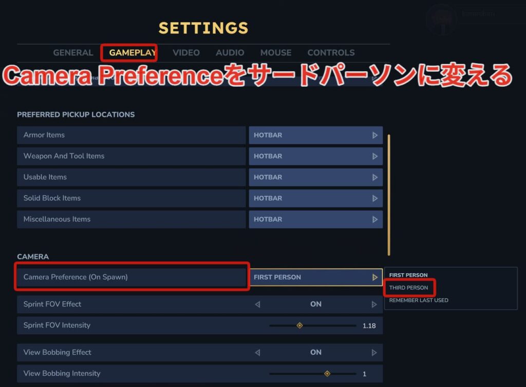 - ②「Camera Preference (On Spawn)」を見つける。