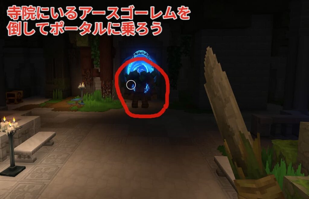 寺院の中にはポータルを守るアースゴーレムがいるので武器持って挑みましょう!