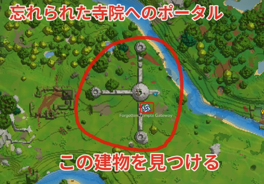 忘れられた寺院へと繋がるポータルは下記画像の様な建造物の中にあります。
