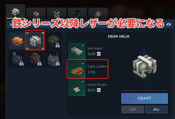 まずはライトレザーを集めて銅シリーズ→鉄シリーズを揃えていきましょう!