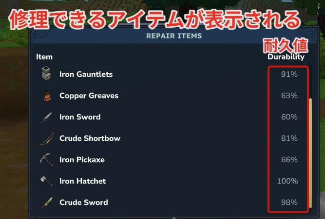 耐久減ったアイテムの修理に便利だけど注意点も把握しよう!