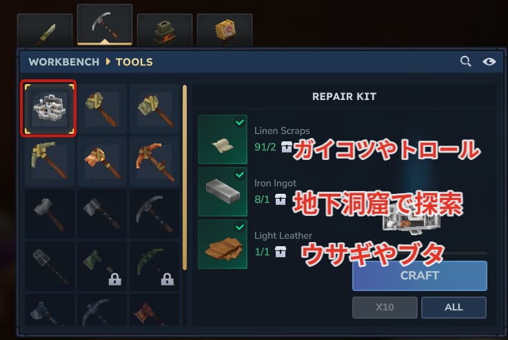 REPAIR KIT(修理キット)はワークベンチで製作することが可能です。