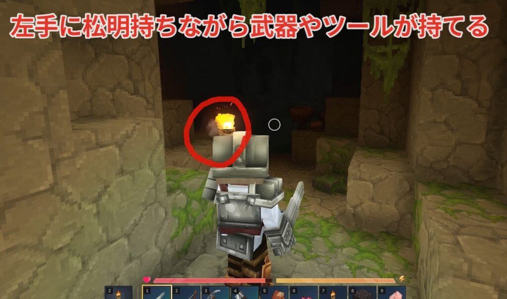 これで左手に松明を持ちながら武器屋ツールが持てるようになりました。