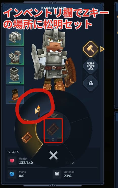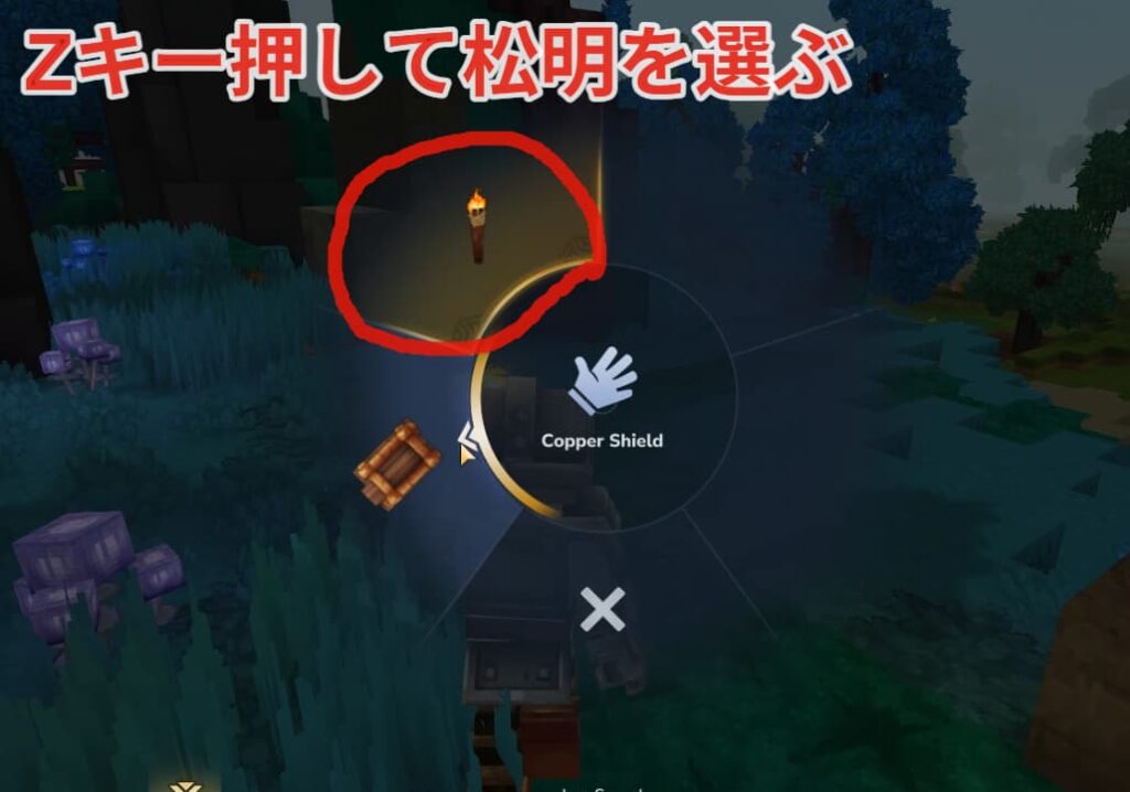 セットした後はZキーを押して松明を選びましょう。