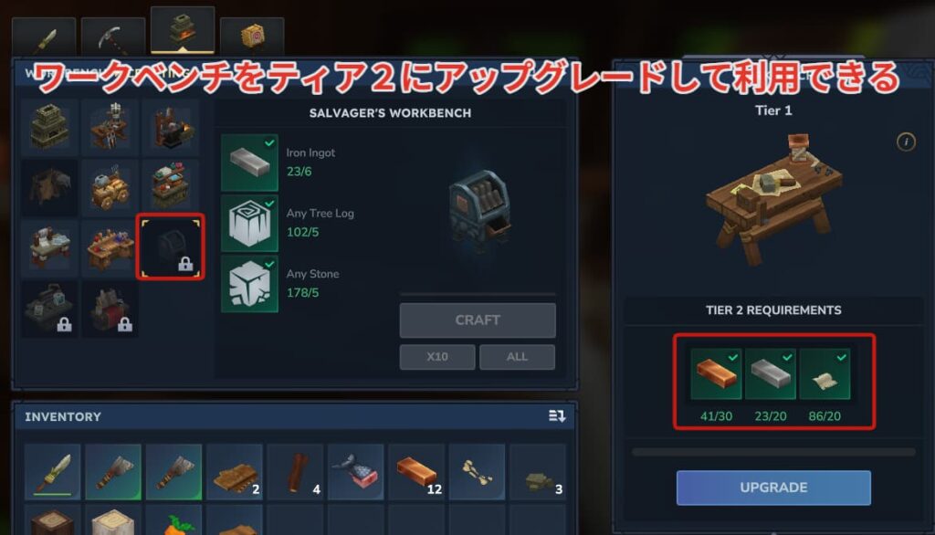 まずはワークベンチをティア2にアップグレードしましょう!