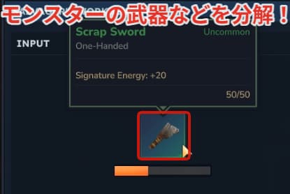効果的な使い方の1つとして、探索時に倒したモンスターの武器など、確実に不要なアイテムを分解して鉄鉱石などに変換しましょう。