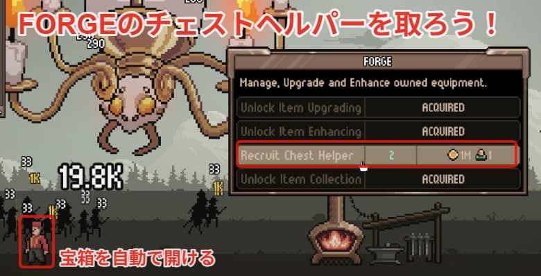 ボス討伐後の宝箱を自動で開ける方法はFORGEにある【REcrult Chest Helper】に割り当てる事でNPCが自動で回収してくれるようになります!