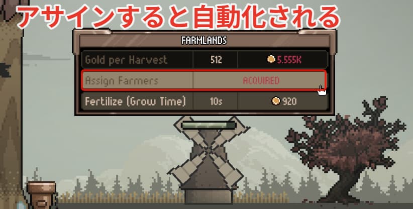 初期にアンロックされる農地やバリスタ等アサインすることで自動化できる建物がいくつかあります。