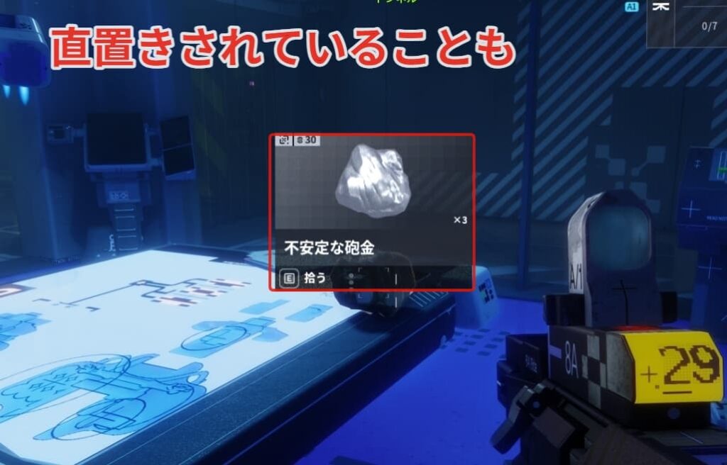 次に不安定な砲金を7個探しましょう。ステーション内の箱で出現しやすいです。