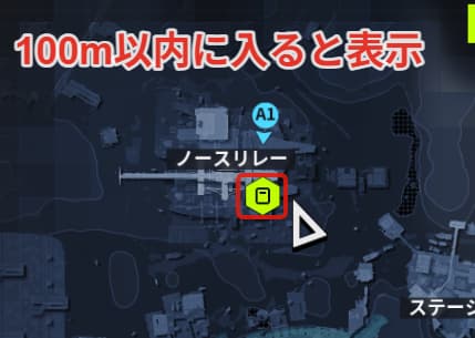 通信タワーの100m以内に入るとマップと画面上に表示されるようになります。