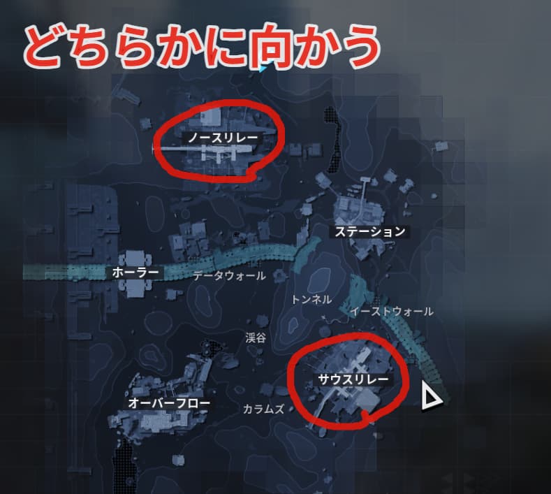 出撃したらマップを開いてノースリレーかサウスリレーに向かいましょう。