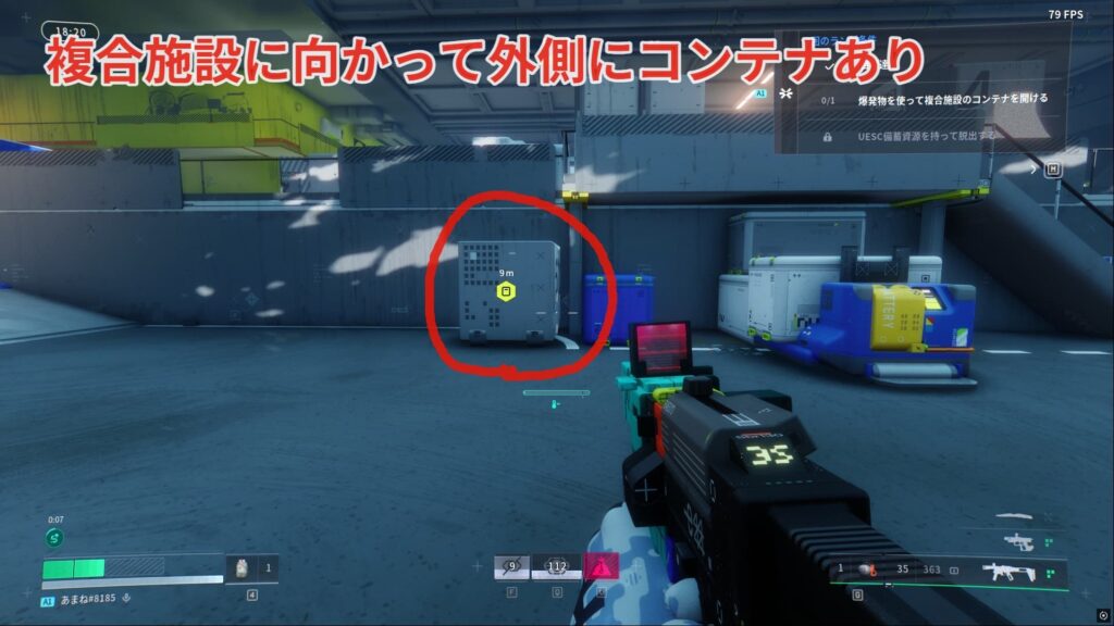 次に複合施設に向かって外側にあるコンテナを見つけましょう。