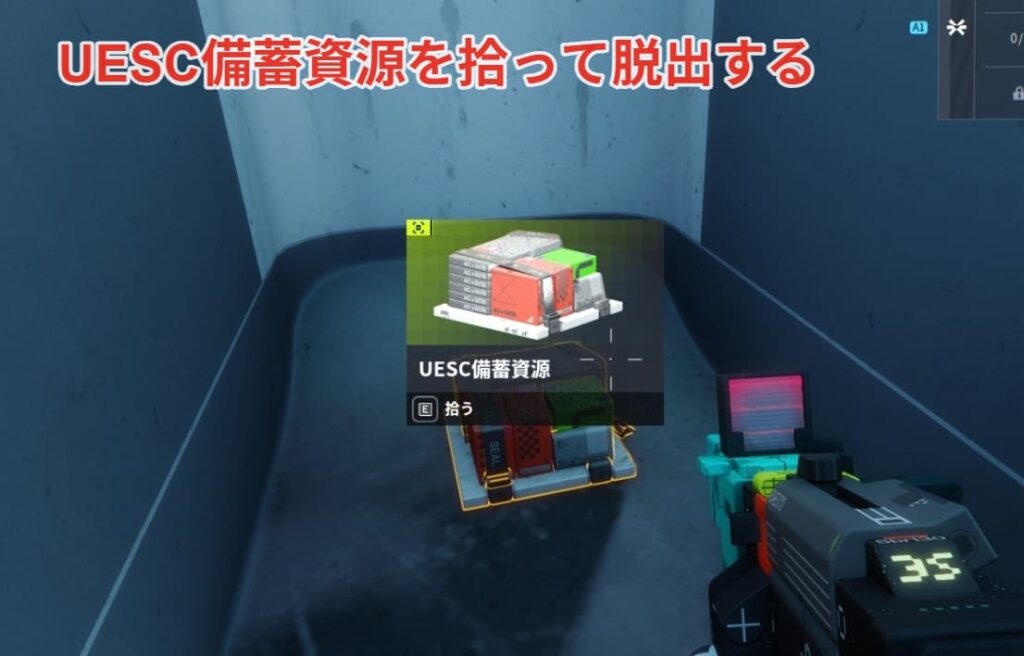 コンテナを爆発物で開けると備蓄資源があるので拾って脱出すればクリアです。