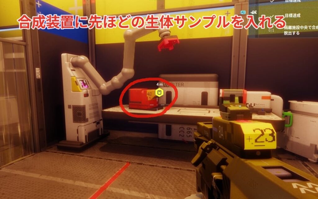 - ③隔離施設中央で合成サンプルを注入してから脱出する