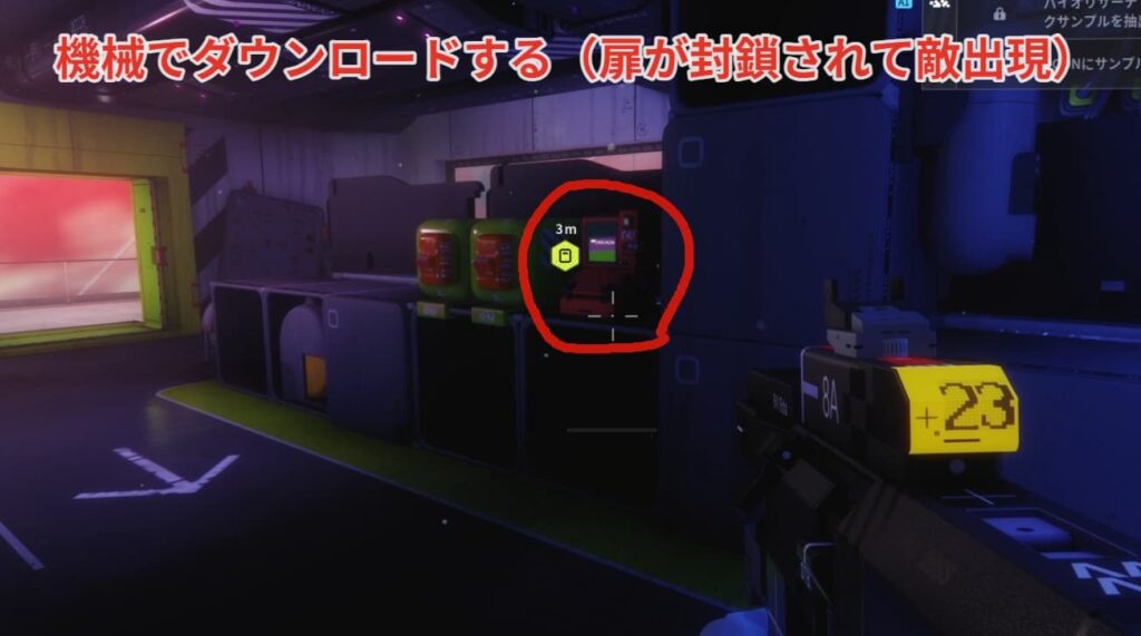 ダウンロード後に扉が封鎖されて敵NPCが湧くので武器と弾薬、回復を用意して挑みましょう。