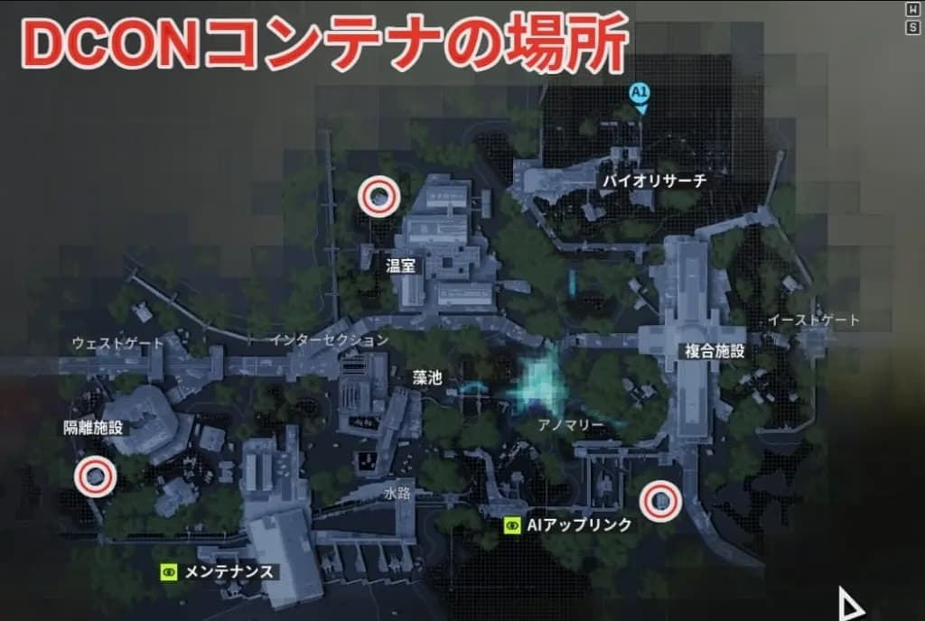 ダイア・マーシュのDCONコンテナの場所は↓