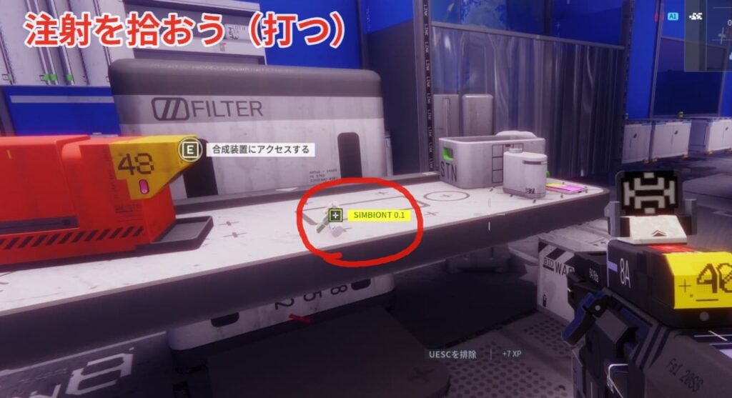 合成装置からでる注射を拾いましょう(勝手に打つ)