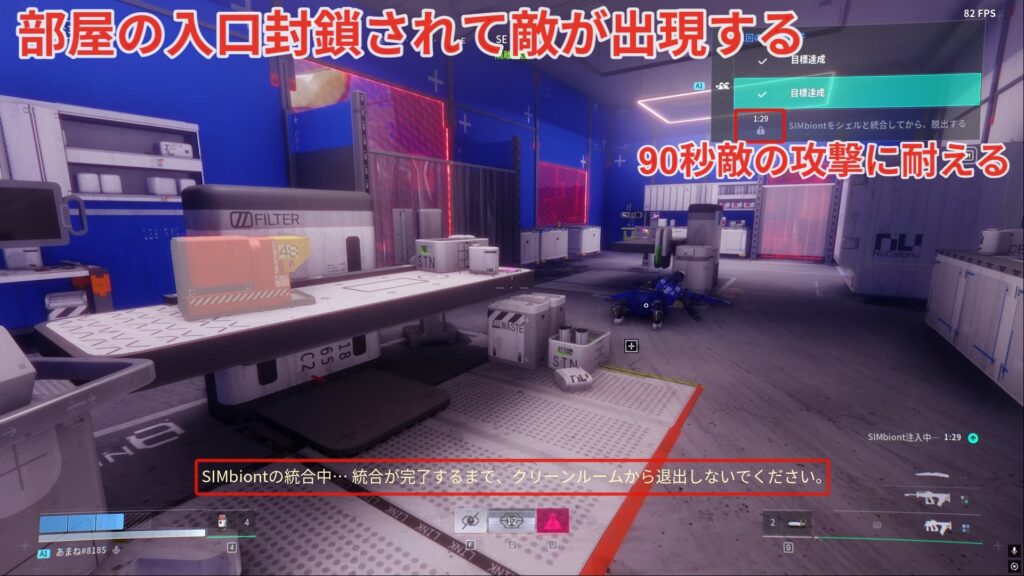 注射を打つと90秒間部屋からでれなくなり、敵が湧いてきます。