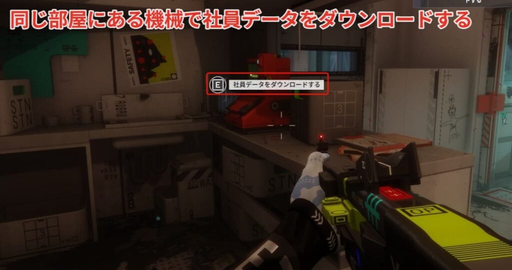 同じ部屋に社員データをダウンロードできる機械があるので作業をすればクリアです。