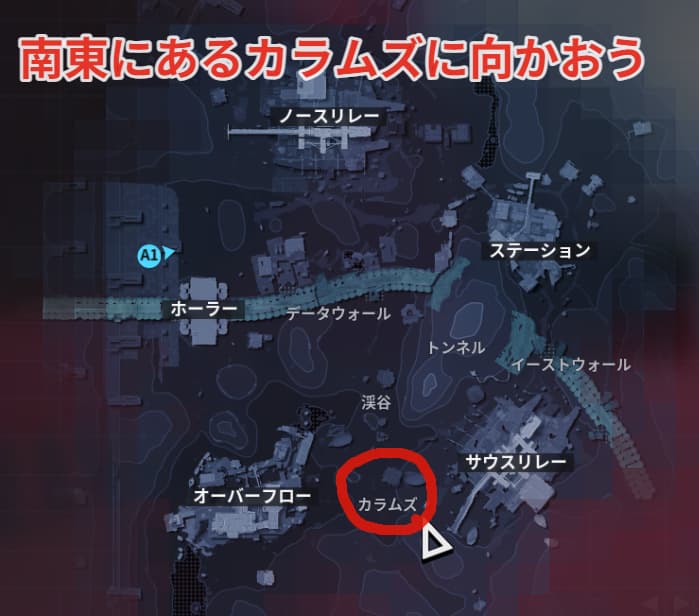 - ①カラムズにある害虫がはこびる建物からニューカロリック社員証を入手する