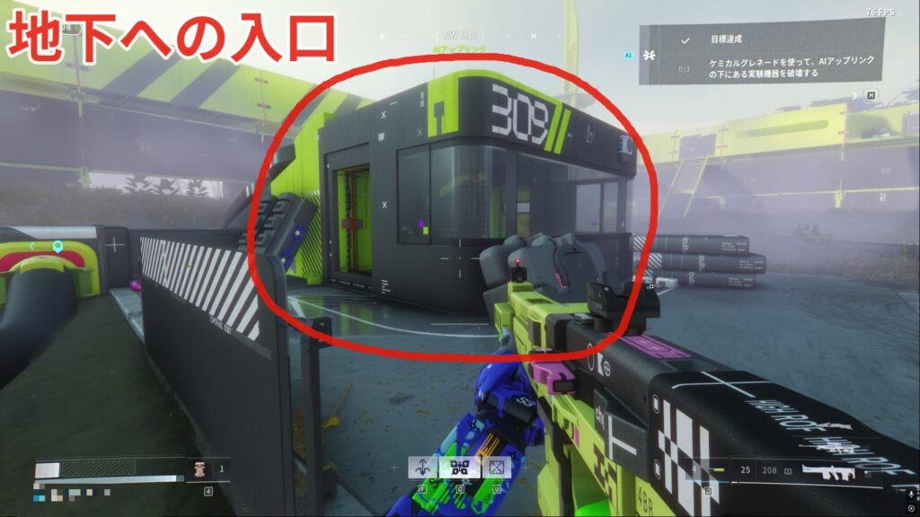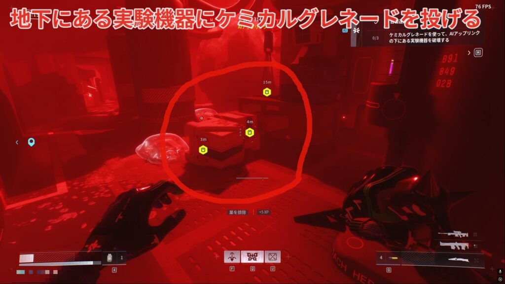 地下に行くと実験機器に目標アイコンが付いているので先ほどのケミカルグレネードで壊せばクリアです。