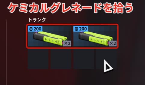 - ①メンテナンスにあるUESC備蓄からケミカルグレネードを入手する