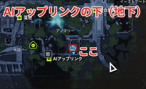 次にメンテナンスから東側に向かいAIアップリンク地下に向かいます。
